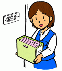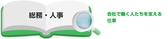 | 大きな会社の中には、総務・人事という部門があります。総務は、会社全体にかかわる、さまざまな仕事を行います。例えば、会社の建物を管理したり、パソコンや机、いすなどの、仕事に必要な品物をそろえたりするのもそうです。会社を代表して、地域の人々と交流することも、総務の仕事の一つです。人事は、会社で働く人に関係することがらをあつかいます。例えば、新入社員の採用や教育、会社の中の人の配置などを行います。 |
