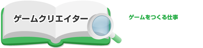 | 他にもゲームクリエイターに関係する職業としてゲームデザイナー、ゲームプログラマ、ゲームプランナー、マルチメディアクリエイター、ゲームディレクターなどがあります。 | |