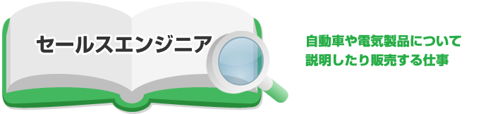 | 他にもセールスエンジニアに関係する職業として電気・電子機器修理技術者、自動車セールスエンジニア、サービスエンジニア、ディーラースタッフ、ホームエレクトロニクス技術者などがあります。 | |