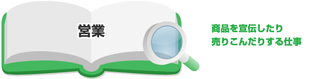 | 他にも営業に関係する職業として広告営業、映画宣伝、広告プランナー、プレスなどがあります。 | |
