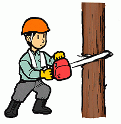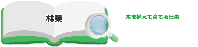 | 林業は、山に木を植えて育てたり、山から木を切り出したりする仕事です。大きな木は、育つまでに何年もかかるので、山をならして苗木(なえぎ)を植え、下草をかる仕事をする人や、大きくなった木を切りたおして材木にする人、そして、材木を山から運び出して製材所に運ぶ人などに、仕事の中身が分かれています。また、枝打ちといって、いらない枝を切って木の形をよくする仕事や、間伐(かんばつ)といって、こみすぎた林で一部の木を切って、林全体を生き生きさせるような仕事もあります。 |