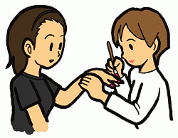 | おしゃれをするために、特別な絵の具を使って、つめにきれいな絵や模様をかくことを「ネイルアート」といいます。そして、お客さんのつめにネイルアートをしてあげる人が、ネイルアーティストです。ネイルアーティストは、細い筆を使い、小さくて丸いつめの上に複雑な絵や模様をかきこんでいく仕事です。そのため、絵が上手なだけでなく、細かい作業の得意な人が向いています。また、ネイルアートをするためには、つめが健康でなければいけないので、お客さんのつめのお手入れをするのも仕事のひとつです。 |