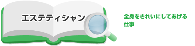 | お肌(はだ)の調子を整えたり、手足の脱毛(だつもう)をするなど、全身を美しくする手伝いをする仕事です。全身美容に使う器具や化粧品(けしょうひん)などをお客さまにすすめたり、お手入れをしてあげたりします。また、体の中から美しくするために、心や体のはたらきを勉強して、心をリラックスさせたり、食事のバランスや睡眠(すいみん)など、生活についてのアドバイスもします。ただ美しくするだけでなく、お客さまに「気持ちがいい」と感じてもらえるようにすることが、大切です。 |