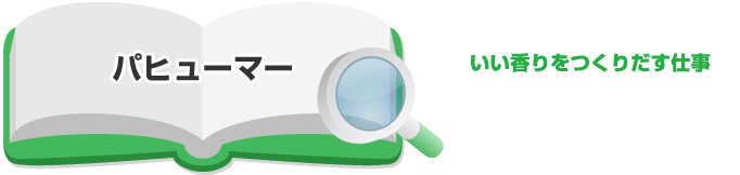 | かおりがする材料を混ぜ合わせ、香水(こうすい)を作る仕事です。香水の原料には、植物や動物からとれるものや、実験室で作られるものがあります。パヒューマーは、どの原料をどのくらい組み合わせれば、どのようなかおりになるかを予想したり、実際に作ってかぎわけたりして、香水を作ります。かおりのしくみや原料についてくわしく、また、においに敏感(びんかん)でなくてはなりません。 |