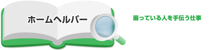 | ホームヘルパーは、お年寄りや体が不自由で困っている人の家に出かけて生活を助けます。着がえを手伝ったり、ご飯を食べさせてあげたり、トイレに連れていったり、かみの毛を洗ってあげたりと、いろいろなお世話をします。動けない人の代わりに洗濯(せんたく)やそうじをしたり、さびしくないように話し相手になってあげたりするのも、大切な仕事のひとつです。また、車いすをおしていっしょに散歩をしたり、お医者さんに連れていってあげたりするなど、家の外で働くこともあります。 |
