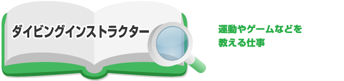 | 他にもダイビングインストラクターに関係する職業としてスポーツインストラクター、チャイルドスポーツインストラクター、レクリエーションインストラクター、フィットネスインストラクター、健康運動指導士などがあります。 | |