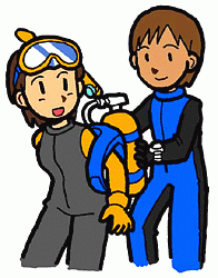 | 酸素ボンベをつけて海にもぐるスクーバダイビング。ダイビングインストラクターとは、スクーバダイビングのやり方について人に教える仕事です。スポーツクラブのプールや海岸で道具のつけ方や使い方を教えたり、ダイビングショップで道具を買いに来た人にアドバイスをしたり、南の海などでお客さんを案内したりします。インストラクターは、スクーバダイビングが上手なだけではなく、人にわかりやすく教えたり、安全に気をつけるなど、さまざまなことができなくてはなりません。 |