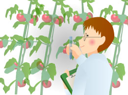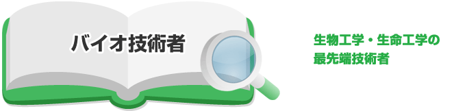 植物や動物、微生物(びせいぶつ)、それらの体の一部など、生体を使った研究や開発を行う技術者です。以前は、バイオ技術といえば、大学の実験室の中で限られた研究者があつかうものでした。しかし、今は、会社の研究開発や生産の現場で、細胞(さいぼう)を培養(ばいよう)して医薬品を生産したり、遺伝子組みかえで農産物の品種改良を行うといったバイオ技術が使われています。