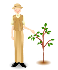 樹木医は、木の状態を把握(はあく)し、健康になるように導く、「木のお医者さん」としての役目を果たします。公園の木、街路樹、記念樹、巨木(きょぼく)や古木の保存など、仕事場はさまざまです。これらの樹木の健康状態を診断(しんだん)し、治療法(ちりょうほう)を考え、回復させるために、環境(かんきょう)を整えたり、薬や栄養をあたえたりと適切な処置をほどこします。この仕事につくには、樹木や自然に関する専門的な知識や経験が必要になります。また、これらの知識をもとに、樹木の診断や治療などの実務を7年以上経験する必要があります。そののち、財団法人日本緑化センターの樹木医資格審査(しかくしんさ)に合格して、樹木医の資格を取得します。受験資格には、学歴や年齢(ねんれい)の制限はありません。7年以上の実務経験が必要なことから、この資格を取る人には、造園業などの専門的な仕事についている人が多いようです。しかし、今後ますます、自然保護や環境の問題が重要視され、緑化の推進計画にも力が入れられることを考えると、仕事のはばの広がりが考えられます。樹木やそれを取り巻く土、水、空気、虫など、自然を愛する人には、魅力(みりょく)ある仕事となることでしょう。 |