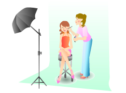 ヘアメイクアーティストは、ヘアデザインやメイクアップをする仕事です。美容師とちがって、パーマやカットなどは行いません。タレントやモデル、映画俳優などのヘアデザインやメイクのほか、ブライダルサロン、エステティックサロンなどにも活躍(かつやく)の場はあります。この仕事は、ただ、ヘアデザインやメイクをして美しく見せればいいわけではありません。特に、ファッション雑誌の撮影(さつえい)などでは、モデルの個性をいかに引き出すかも重要なポイントとなります。また、カラーコーディネートのセンスも問われます。特別な資格はいりませんが、専門学校などで、技術や知識を学んでおくと有利です。美容師の資格や、ファッションコーディネート色彩能力検定(しきさいのうりょくけんてい)、ネイルアーティストなどの資格を取っておくのもよいでしょう。また、最近では、医療(いりょう)・福祉(ふくし)の場でもメイクが評価されています。解剖学(かいぼうがく)や生理学などの基礎的(きそてき)な知識は学んでおいて損はありません。ヘアメイク関連会社に就職したり、フリーのヘアメイクアーティストについて修業したりするなどの方法がありますが、将来、独立してやっていこうという人は、フリーの人に弟子入(でしい)りすることが多いようです。 |