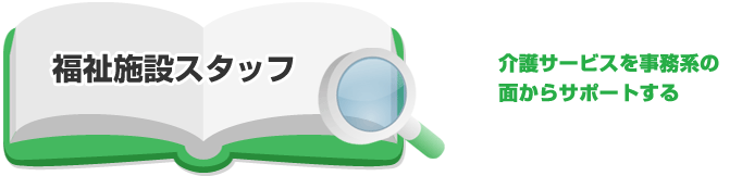 社会福祉関係の施設全体の呼び名である福祉施設の主なものに、高齢者(こうれいしゃ)施設、児童施設、身体障がい者施設、精神障がい害者施設などがあります。どの施設のスタッフも、施設を利用している人と接する仕事をしている現場スタッフと、その現場スタッフが仕事をしやすいようにいろいろな条件を整えるスタッフとに分けられます。現場スタッフには、利用している人を直接世話する職員であるケアワーカー、送迎(そうげい)バスのドライバー、現場をまとめる指導員といった職種の人たちがいます。 現場スタッフ以外は、食事を作る調理スタッフ、洗濯(せんたく)やそうじなどをするスタッフ、そして事務を行うスタッフなどです。施設の設備の修理などを行うスタッフもこちらに入ります。また、施設の職員ではないのですが、福祉施設には、お金をもらわずに善意で施設の作業を行うボランティアスタッフがいることもあり、施設を利用する人たちの大きな支えになっています。 |