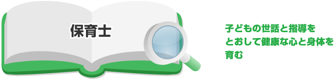 保育士の仕事は、保育園や児童福祉施設などで、子どもといっしょに過ごして世話をします。子どもが生活するうえで必要なことをきちんと身につけ、健康な心と身体を持った人になるように世話をするのが、保育士の仕事です。子どもの年齢(ねんれい)によって世話をする内容は変わりますが、赤ちゃんならミルク、眠(ねむ)らせること、おむつ交換(こうかん)などが中心です。それより大きな子ども(学校に行く前の子ども)なら、食事やトイレが一人でできるように手助けしたり、友達との遊びや行事などの体験をさせたりして、その成長を見守ります。保育士になるには、資格が必要です。保育士の資格は、大学・短大・専門学校の専門課程を卒業するか、または各都道府県で行う試験で取ります。