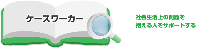 社会生活を送るうえで、さまざまな困難や問題を抱えている人に対して、相談や助言、支援を行うのがケースワーカーの仕事です。問題を解決するために、その人にかかわる多くの人が集まって相談する会議をケースカンファレンスといい、この会議に参加する人すべてをケースワーカーということができます。実際にケースワーカーとして活動している人には、福祉施設(しせつ)の現場職員である指導員、ケアワーカー、高齢者(こうれいしゃ)の家庭を訪問する介護(かいご)福祉専門員(ケアマネージャー)などがいます。