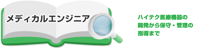 人間の生活の中で、機器(機械や道具)の進歩は目覚ましいものがあります。医学の分野でも、次々と新しい高性能の機器がつくり出され、人々の命を救うのに役立っています。メディカルエンジニアとは、そのように次々とつくり出されて医療(いりょう)の現場で使われている機器を、安全に正しく運用するハイテク技術者のことです。医療機器の種類はさまざまで、病気の判断に役立つ心電図や内視鏡(ないしきょう)、レントゲン装置などや、人工呼吸器、人工心肺装置、人工透析装置(じんこうとうせきそうち)といった、治療(ちりょう)に直接使われているものなどがあります。みんながよく知っている体温計も、医療機器のひとつです。 医療機器を操作する人に臨床工学技師(りんしょうこうがくぎし)がいますが、主に人工呼吸器などの生命を維持(いじ)する機器を扱(あつか)うのが仕事です。メディカルエンジニアは、臨床工学技士が操作する機器に加えて、より広い範囲(はんい)の種類の機器を扱います。メディカルエンジニアは、電気・電子の知識や医学的な知識も必要な仕事です。メディカルエンジニアの仕事場は、医療機器メーカーや販売会社(はんばいがいしゃ)が主で、メーカーでは、開発の仕事にもかかわります。特に資格は必要ありませんが、臨床工学技士の資格を持つ人が多く働いています。 |