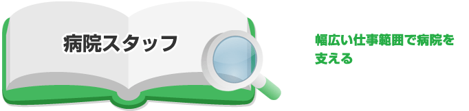 病院では、たくさんの人が働いています。病院スタッフとは、病院で働く人全員を指します。