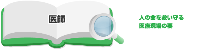 あなたは、病気をした時に病院へ行きます。そして、お医者さんにみてもらうでしょう。お医者さんの正式な呼び名が、医師なのです。医師は、医療技術者(いりょうぎじゅつしゃ)の中心として、病気やけがの傷などの診察(しんさつ)、治療(ちりょう)、予防、リハビリテーションを行います。医師のほとんどが、患者(かんじゃ)の治療や病気の予防、健康相談、検診などを行う臨床医(りんしょうい)です。その中でも、風邪(かぜ)など、体全体の病気を治療する内科医の数が一番多いのです。次に多いのは、外科医で、整形外科、小児科と続きます。そのほか産婦人科、耳鼻咽喉科、眼科、麻酔科(ますいか)などがありますが、すべて医師と呼ばれます。臨床医以外の医師は、研究医と呼ばれ、病気の原因であるウイルスなどの基礎研究(きそけんきゅう)を行っています。医師の働き方として、総合病院や大学病院などに勤務する勤務医と、個人で医院を開いている開業医がいます。医療技術や薬の進歩には、目ざましいものがあり、医療の中心を担う医師は、診察、治療、症例研究(しょうれいけんきゅう)など、激務の中で毎日がんばっています。また、医学の進歩にともなって、医療分野もより専門的になり、細分化されつつあるため、医師はますます勉強しなければいけないのが事実です。医師は国家資格です。