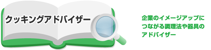 クッキングとは、料理をすることです。クッキングアドバイザーとは、料理に関連する製品を多くの人に使ってもらうことを目的として、料理法の実演やアドバイスなどをする人のことです。具体的には、デパートやスーパー、イベント会場などで買ってもらいたい調理器具の使い方を説明したり、実際にその場で調理したりして、新製品の紹介(しょうかい)を行います。