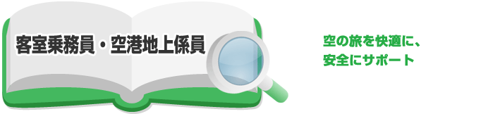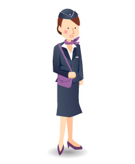客室乗務員は、飛行機を利用する乗客に、快適な空の旅ができるように各種サービスを行う人のことで、フライトアテンダント、キャビンアテンダントなどと呼ばれることもあります。飲み物や食事の世話、毛布を貸し出したり、雑誌を配ったりなど、乗客の要求に対応して快適な空の旅を提供します。事故や急病人の発生、また、ハイジャックなどの非常事態への対応など、確かな知識と冷静な判断力が求められる仕事です。航空会社に就職しますが、健康、語学力、年齢(ねんれい)などに厳しい条件がある場合が多いです。契約社員(けいやくしゃいん)、派遣社員(はけんしゃいん)として働く客室乗務員も多くなっています。空港地上係員は、空港内で旅客サービスをします。例えば国際線の場合ですが、乗客が空港に着いてからの搭乗手続(とうじょうてつづ)き、出国手続きや税関を通って飛行機に乗りこむまでの世話を行います。そのほか、各飛行機会社のカウンターで、チケットの受付や予約・販売(はんばい)、荷物預かりなどの業務をする人も空港地上係員です。英会話や接客能力が求められる仕事です。 |