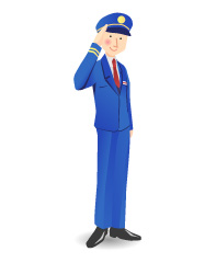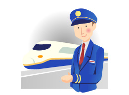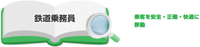 鉄道乗務員とは、電車に乗務して運行の仕事にかかわる人のことを言います。電車が走るためには鉄道が必要で、その鉄道を管理・運営しているのが鉄道会社です。鉄道会社の職員には、切符販売(きっぷはんばい)などを行う駅に勤務する人、電車の乗務にかかわる人、鉄道を守る保線業務などの部門で働く人と、この人たちを支える広報、人事、事務職などのオフィス部門の人がいます。早朝から深夜まで、電車の運行は長時間にわたりますが、この間ずっと乗客を安全に目的地まで送り届けるための仕事をしているのが、鉄道乗務員です。鉄道乗務員には3種類の仕事をする人がいて、乗客の乗り降りの確認(かくにん)から車内放送をする人、列車の安全運行に気を配り乗客とのさまざまな対応をする人、そして緊急時(きんきゅうじ)に乗客の誘導(ゆうどう)などを行うのが車掌(しゃしょう)です。乗務員の一人が運転士です。ダイヤどおりに電車を運行し、安全に、そして正確に電車を運転するのが運転士の仕事です。運転士になるには、国家資格の動力車操縦者運転免許が必要です。社内販売を担当しているのが鉄道パーサーで、乗客の注文にきめ細かに対応することが必要な仕事です。