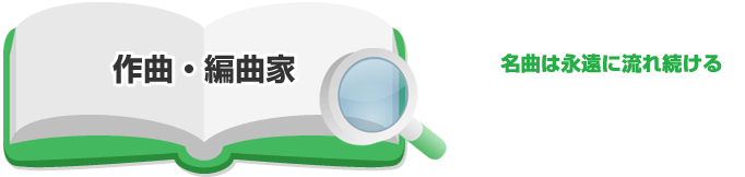 テレビから流れるポップスやゲームのテーマ曲など、わたしたちの暮らしの中には、いつも音楽があふれています。その音楽を作るのが作曲家の仕事です。作曲をたのまれると、ディレクターと曲のイメージについて話し合い、そのイメージに合った曲を作ります。曲、詞、歌手などのイメージをしっかりつかむ豊かな感性と音楽性が求められます。