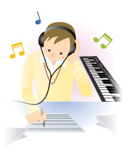 テレビから流れるポップスやゲームのテーマ曲など、わたしたちの暮らしの中には、いつも音楽があふれています。その音楽を作るのが作曲家の仕事です。作曲をたのまれると、ディレクターと曲のイメージについて話し合い、そのイメージに合った曲を作ります。曲、詞、歌手などのイメージをしっかりつかむ豊かな感性と音楽性が求められます。編曲家の仕事は、作曲された曲を実際に演奏するとき、どのパートの楽器にどんな演奏をさせるかを考える仕事です。編曲家のうでしだいで、曲のイメージが全くちがってくるのです。 プロを目ざすには、音楽大学や専門学校で専門的な知識や技術、センスを学び、レコード会社や音楽事務所など、制作の現場で経験を積みます。最近では、作曲や編曲でもコンピュータが使われるので、その能力も身につけておいたほうがいいでしょう。基本的にはフリーで仕事をしている人が多く、実力主義の世界です。いったん実力が認められれば、仕事が集中します。すぐれた才能と実績が求められる世界です。 |