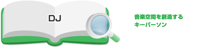 DJは、ディスコなどで、レコード音楽を自分で選曲して紹介(しょうかい)し、曲と曲の合間におしゃべりを入れて、会場のふんい気を盛り上げる仕事です。