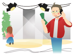 テレビの番組は、テレビ局や、テレビ局から番組の制作をうけおった番組制作会社によって作られています。ひとつの番組ができるまでには、さまざまなスタッフがかかわっていますが、その中でも重要な仕事のひとつが、番組制作者です。テレビ番組には、通常ロケと呼ばれるロケーション、つまり現地取材が欠かせませんが、そのロケを行うためのさまざまな段取りを行うのが、番組制作者の仕事です。どこに行って、どんな取材をするかが決まったら、番組制作者は、まず現地に行って下見をし、取材先への撮影(さつえい)許可を求めたり、取材スタッフが利用する宿泊施設(しゅくはくしせつ)などをチェックしたり、撮影に必要な物が、現地で調達できるかどうかを確認したりします。そのように、事前にしっかりと準備を整えておくことによって、実際のロケーションができるだけスムーズに行えるようにするのが、番組制作者の役割です。 |