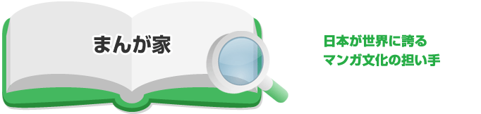 町中にあふれているまんが雑誌などにまんがを発表するのが、まんが家の仕事です。月刊誌から週刊誌、ときには単行本のためにオリジナルのストーリーでかきます。最近では、わかりにくいテーマなどを理解するために、学習関連の出版物や公的な印刷物にも、まんがが使われることが多くなりました。まんが家になるためには、美術系専門学校で知識や技術を身につけるために「まんが学科」コースに入る、大手出版社が設けている新人賞を取ってデビューする、または、プロのまんが家のアシスタントになってうでをみがきチャンスを待つなどの方法があります。