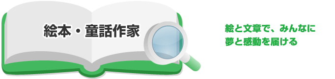 絵本・童話作家は、子どもはもちろん、多くの人たちに夢や希望をあたえます。絵本の場合には、全部を一人でやることもありますが、絵と物語を画家と作家が共同作業で作ることもあります。仕事は、話の流れと構成を考え、絵の配置・色づけ、文章の配分などを考えながら進めていきます。絵本作家を目ざすには、イラスト科のあるデザイン系の専門学校で学んだり、自作をコンクールや出版社に持ちこんだりするのが一般的(いっぱんてき)です。