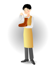 服飾デザイナーは、ファッションデザイナーといっしょに、帽子(ぼうし)や靴(くつ)、バッグをトータルなファッションとして考え、作り上げていくデザイナーです。どれも、材質はもちろん、スタイルや流行を考えてデザインしていきます。素材として革を使う場合には、特長やあつかい方、制作のテクニックなどを身につけている必要があります。そのためには、関連のコースを持つ専門学校で学び、同時に、デザインの知識や発想力、トレンド(風潮)に対応する企画力(きかくりょく)も学びます。卒業後の就職先としては、ファッションメーカー、ブティック、アトリエなどがあります。なかには、企業(きぎょう)と契約(けいやく)し、フリーで活躍(かつやく)する服飾デザイナーもいます。オーダーメイドの場合は、お客様が何を求めているのかを理解するコミュニケーション能力も必要とされます。多くのデザイナーは、それぞれ得意な分野に進み、帽子デザイナー、靴デザイナー、バッグデザイナーに分かれることもあります。海外の工場とやりとりすることもあり、活躍の場が日本にとどまらないのもこの仕事の魅力(みりょく)です。 |