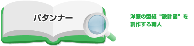 服の型紙を作る人をパタンナーと呼びます。ファッションデザイナーのかいたデザイン画をもとに、そのイメージを読み取り、布を裁断するもとになる型紙を製作します。また、デザイナーの意図を実現するための縫製(ほうせい)仕様書を作り、生産工場との打ち合わせをします。そのため、ファッションセンスが優(すぐ)れていることはもちろん、いろいろな素材や縫製技術の知識が必要です。
