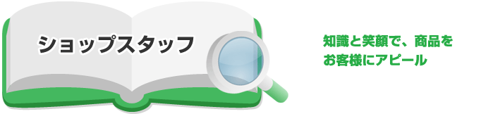 ショップスタッフは、実際にお店に立って、服やアクセサリーなどの販売(はんばい)をします。主にデパートや専門店などのショップに勤め、お客様とコミュニケーションをとりながら、ファッションのアドバイスを行います。販売のさまざまな技術を身につけ、お客様と接します。もっとオシャレになりたいというお客様のニーズにこたえられるように、ファッションの最先端(さいせんたん)を知っておくことと、自身がファッショナブルで、魅力(みりょく)のある人間であることが望ましいでしょう。また、ショップの商品のコンセプト(考え方)をよく理解し、身につける服やアクセサリーに気を配ります。服飾(ふくしょく)系の大学や短大で勉強したり、専門学校でファッションデザインの基本や服の製造工程などを学んでおいたりすると、ショップスタッフとしての武器になります。また、ファッション販売能力検定や販売士検定を受けておくと就職の時に有利です。自分自身が楽しんで仕事にかかわること、流行にアンテナをはって新しい情報をキャッチすることが、成功への近道です。 |