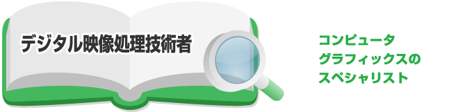 映像をコンピュータで処理する技術の専門家です。テレビ番組、映画、アニメーション、CMなどの映像作品、また、写真集や絵本などの印刷物を作る仕事では、ビデオ映像、写真、イラストなどのデータをコンピュータに取りこんで処理するデジタル編集があたりまえになってきています。したがって、映像制作会社、テレビ局、映画やアニメーションの制作プロダクション、出版社など、デジタル映像処理技術者が必要とされる仕事場はたくさんあります。