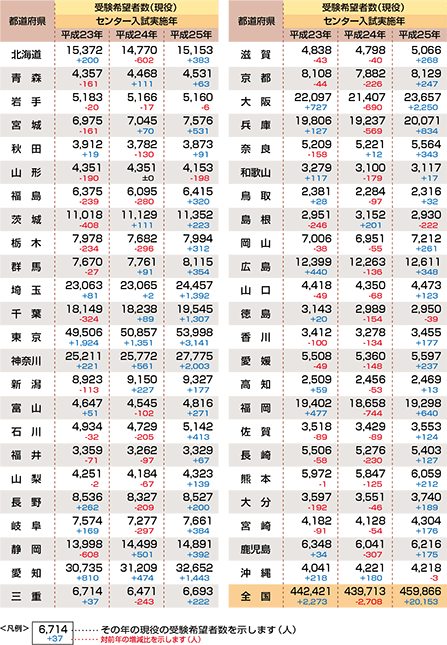 | データ資料: | 「平成25年度大学入試センター試験の志願者数(確定)について」より <独立行政法人大学入試センター> |
