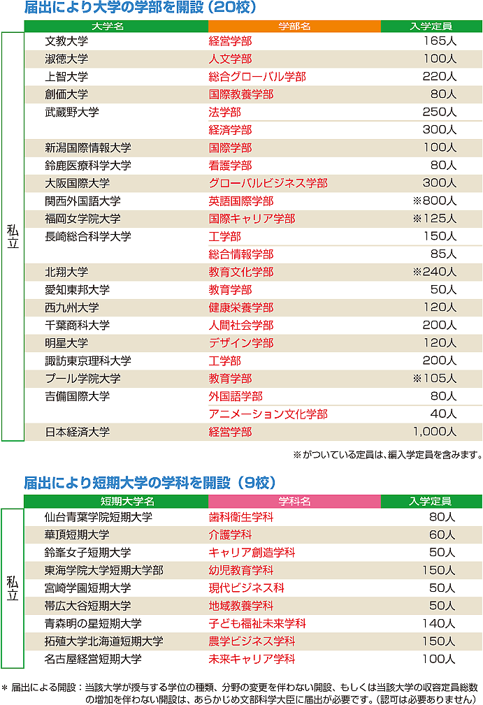 データ資料: 平成26年度開設予定の大学の学部等の設置届出一覧