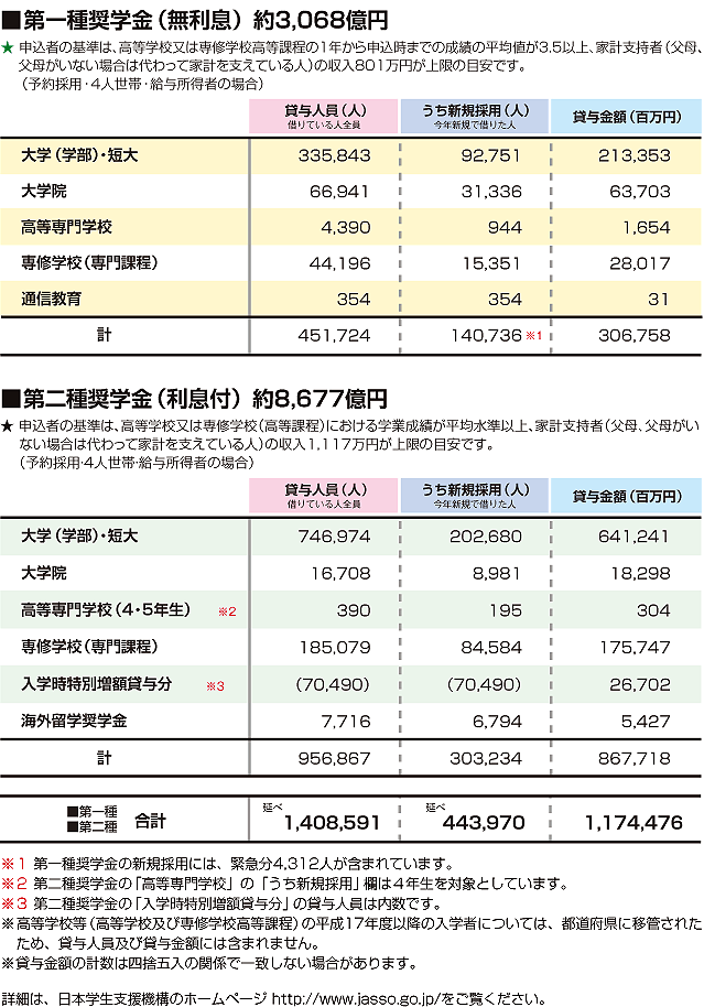 | データ資料: | 日本学生支援機構2014概要 奨学金貸与事業<日本学生支援機構> |