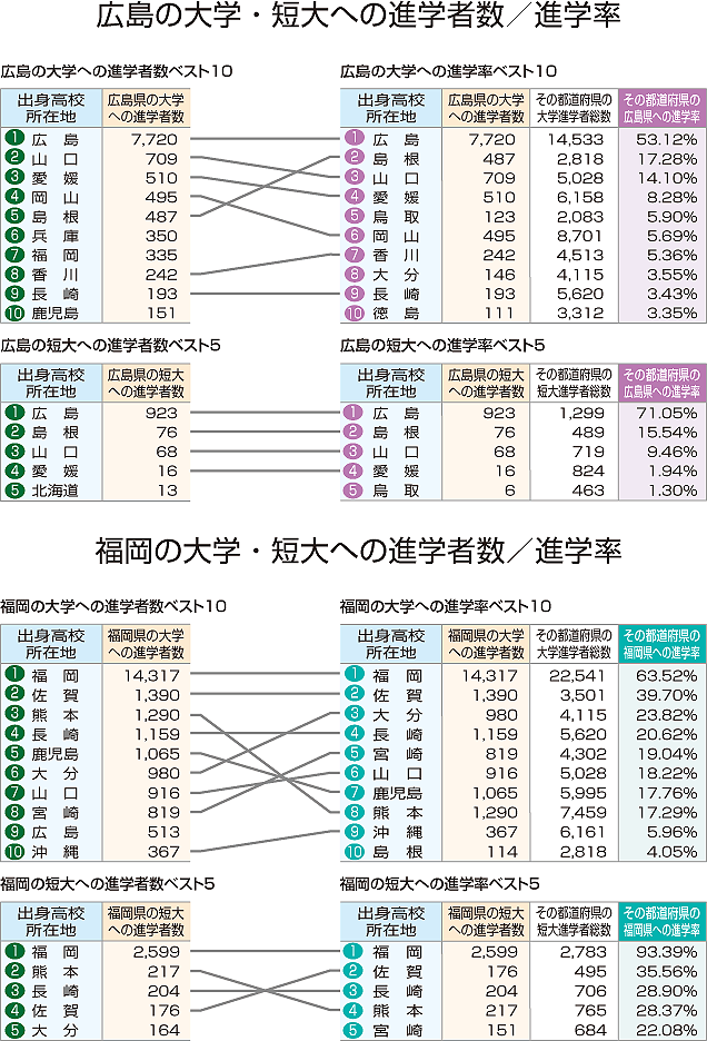 広島、福岡の大学・短大への流動(2014年)