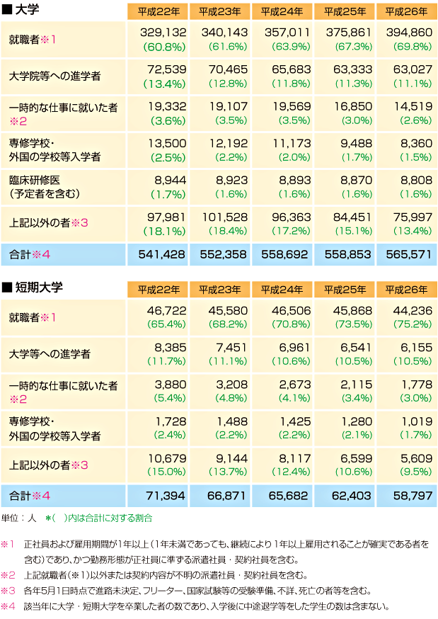 大学・短期大学卒業生(男子+女子)の進路
