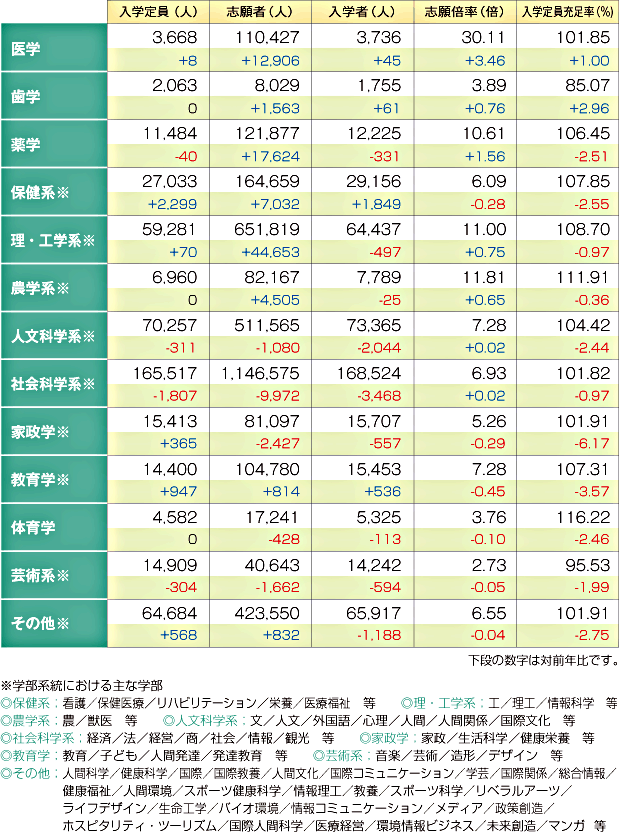 データ資料: 「平成26年度私立大学・短期大学等入学志願動向」より