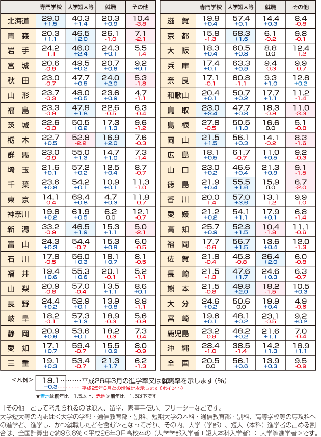 | データ資料: | 平成26年度学校基本調査報告書(平成26年12月発行)より <文部科学省生涯学習政策局政策課調査統計企画室発行> |