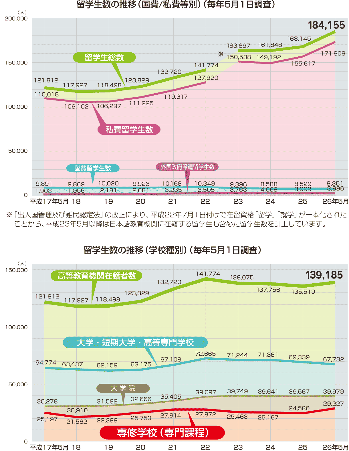 | データ資料: | 「平成26年度外国人留学生在籍状況調査結果」独立行政法人日本学生支援機構 |