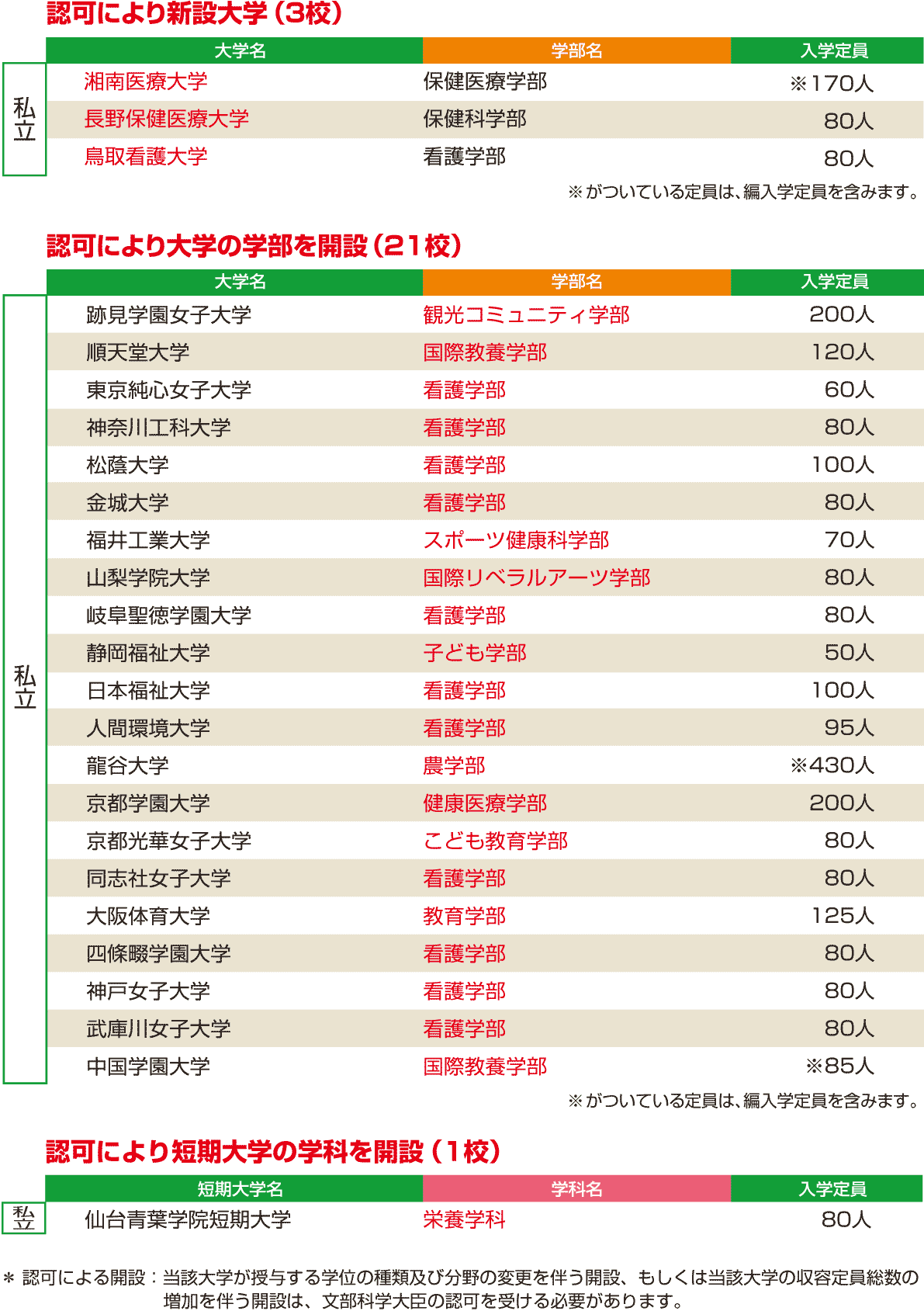 平成27年度開設予定学部等認可申請一覧<文部科学省>