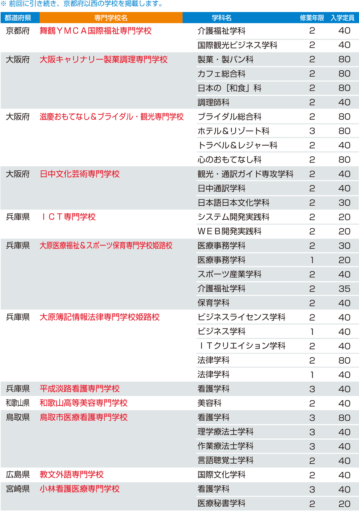 各都道府県にて認可を受け、2015年4月に開校された私立の専修学校の専門課程を記載しています。