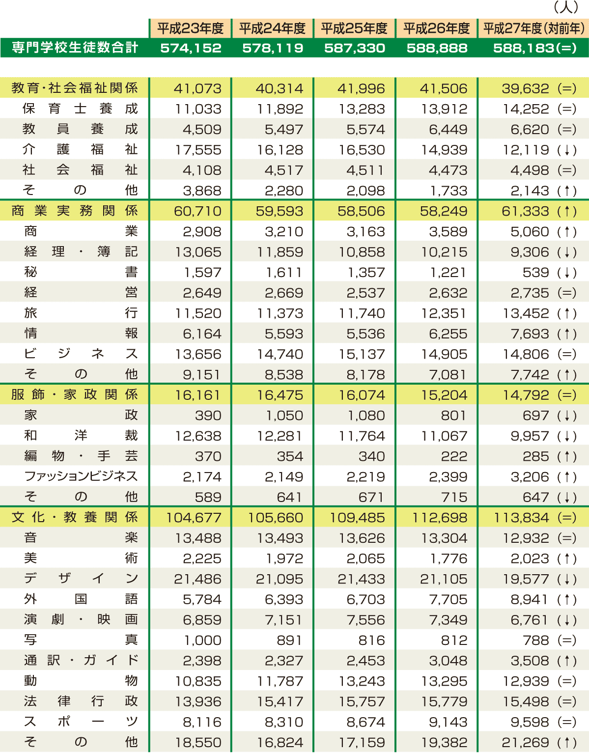 ※(対前年)について 生徒数の伸び率が+5%以上は(↑)、±5%未満は(=)、-5%以下は(↓) |