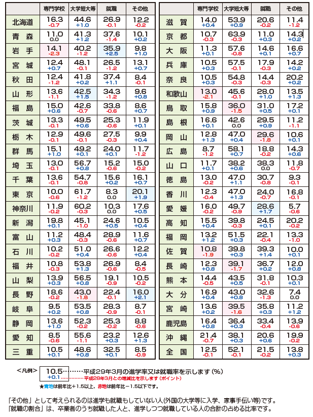 | データ資料: | 平成29年度学校基本調査(文部科学省ホームページ・平成29年12月 発表)より表にして作成 |
