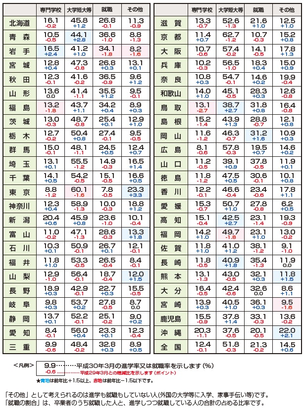 | データ資料: | 平成30年度学校基本調査(文部科学省ホームページ・平成30年12月 発表)より表にして作成 |
