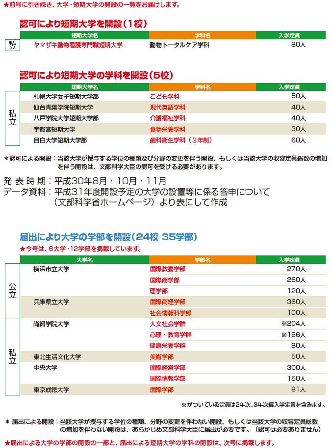 | データ資料: | 平成31年度開設予定の大学の学部等の設置届出について (文部科学省ホームページ)より表にして作成 |