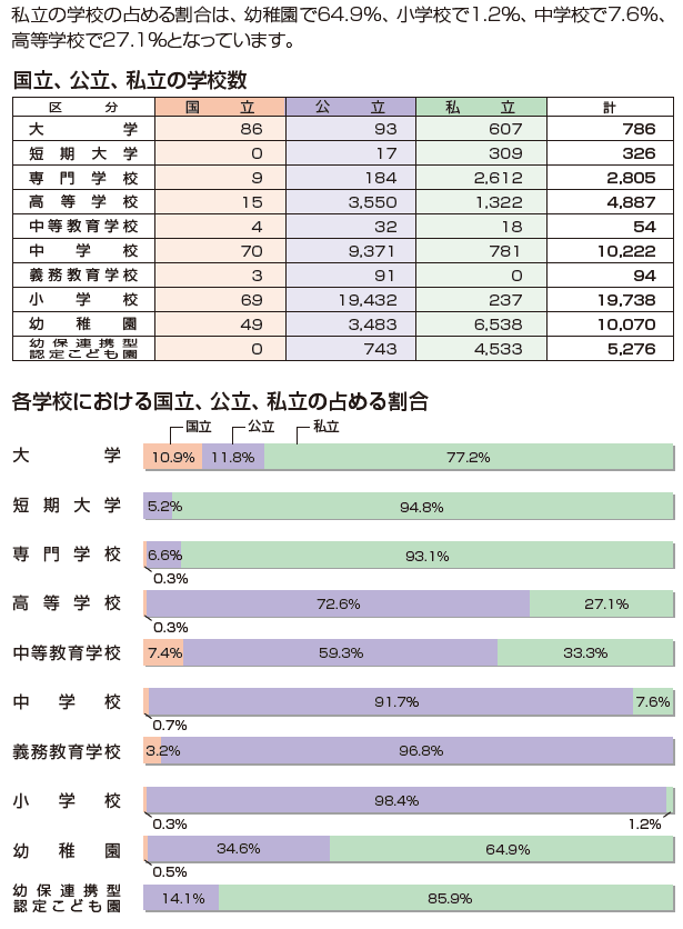 | データ資料: | 令和元年度学校基本調査(文部科学省ホームページ・ 令和元12月発表)より表・グラフにして作成 |