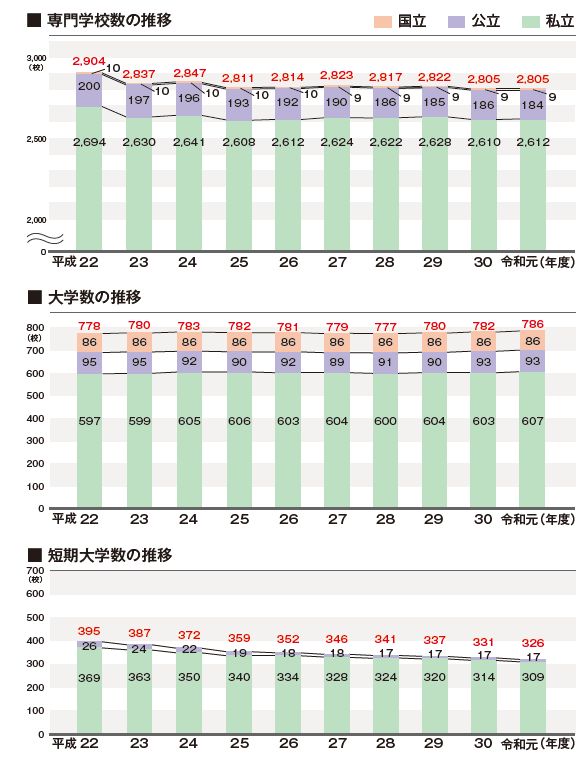 | データ資料: | 平成22~令和元年度の学校基本調査(文部科学省ホームページ) よりグラフにして作成 |