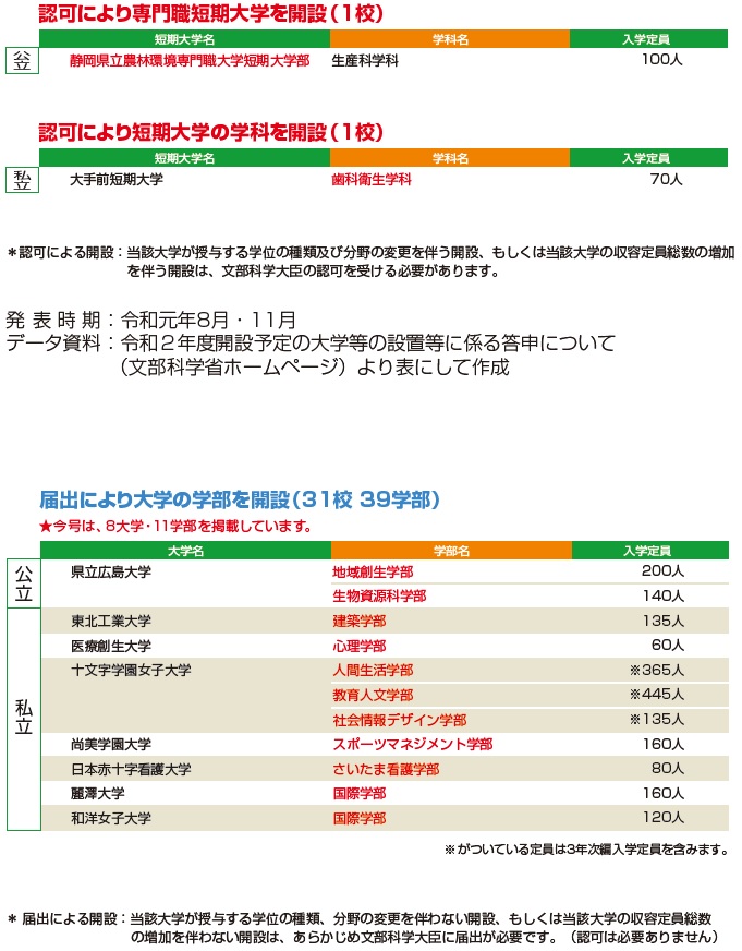 | データ資料: | 令和2年度開設予定の大学の学部等の設置届出について (文部科学省ホームページ)より表にして作成 |